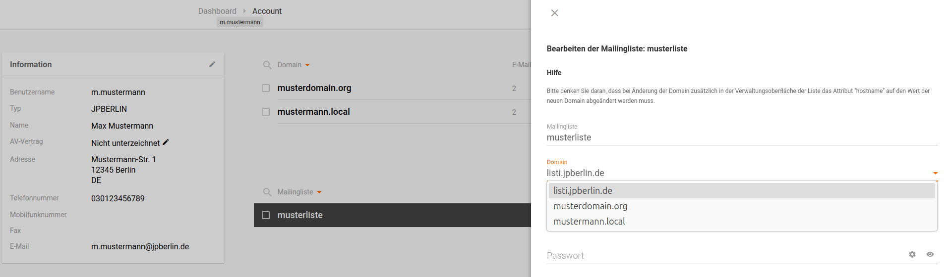 Du möchtest Deine Mailingliste unter Deiner eigenen Domain statt unter listi.jpberlin.de erreichbar machen, beispielsweise neues-aus-berlin@mustermann.de?