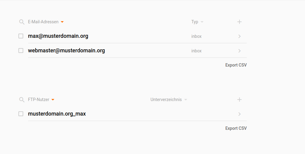 Über der Auflistung der Mailinglisten befindet sich im rechten oberen Eck ein „+“-Symbol. Durch Klick darauf öffnet sich das Menü zur Erstellung von Mailinglisten. Hier kannst Du Deiner Mailingliste einen Namen geben, die Domain festlegen unter der diese erreichbar sein soll und ein Passwort für den Listenadministrator festlegen.